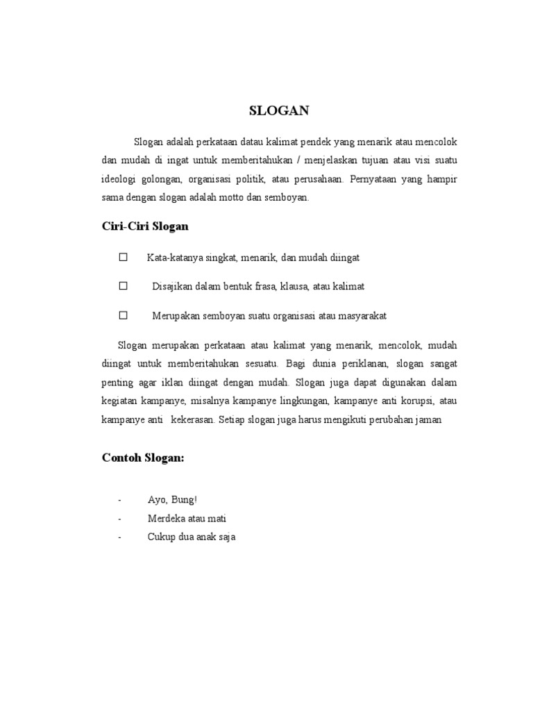 Slogan Pengertian Ciri Tujuan Macam Contoh Gambar